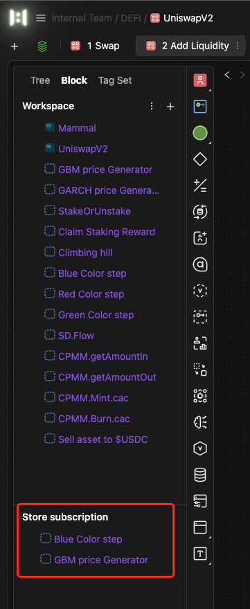 - 收藏的块文件会出现在建模界面左侧工作导航栏的块标题栏的“市场订阅”,并可以直接用于建模。
