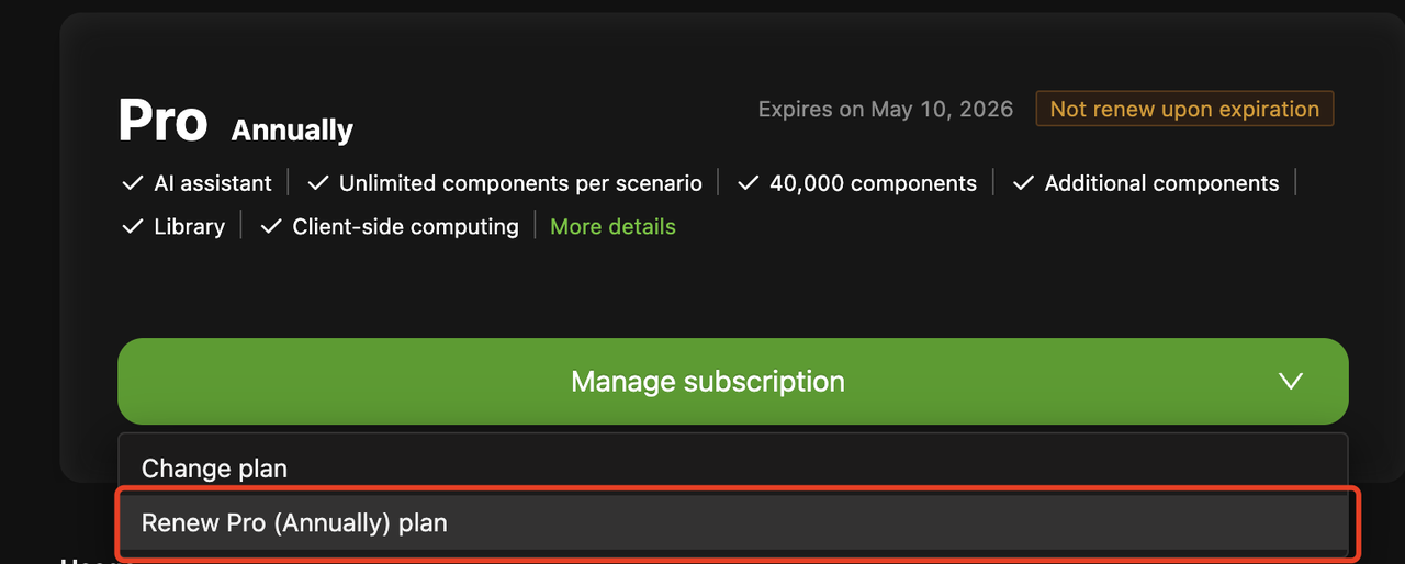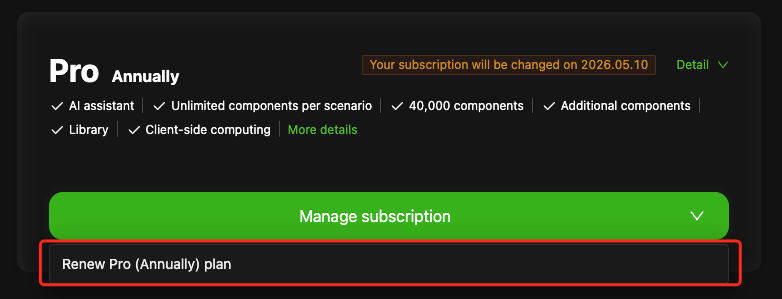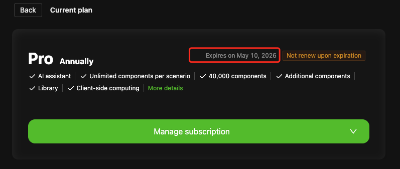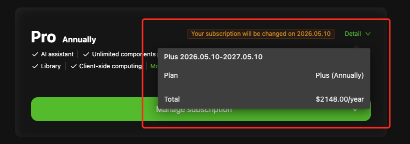 - 当前付费计划到期后将转为新的计划,你可以在订阅与付费页面中看到相关信息。