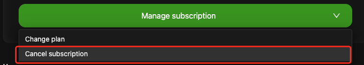 - 在管理订阅下拉菜单中选择取消订阅选项。