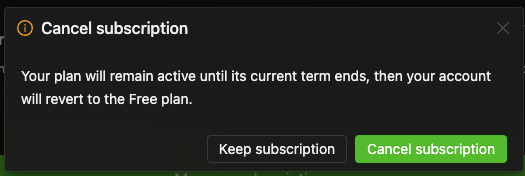 - 取消订阅后,当前付费计划到期后将转为免费计划,你可以在订阅与付费页面中看到相关信息。