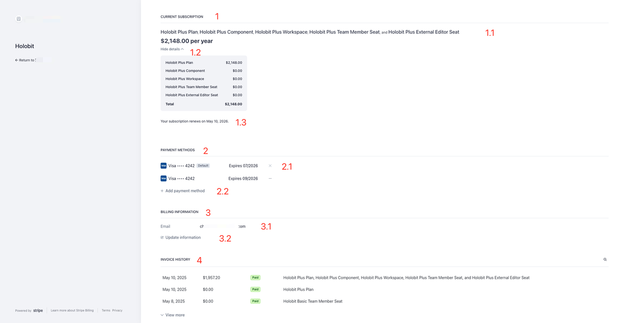 - 管理支付方式、查看账单信息和获取发票或收据等。