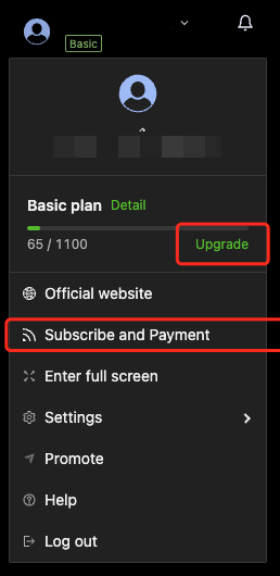 - 在个人中心点击订阅与付费选项或订阅概况浮动栏的升级按钮。