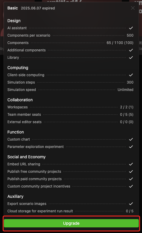 - 在当前订阅计划详情弹窗(上图中点击详情)中点击升级按钮。