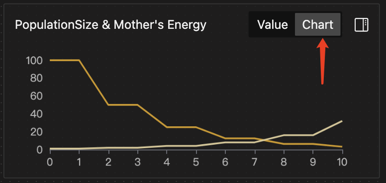 对应图表会动态增加新个体的数据和中断消亡个体的数据