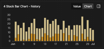 Tick或Now,以展现历史趋势。 - 柱图和堆积柱图,通常用于较短的历史趋势,也适用于最新状态的多个数据大小对比,无论数据正负。