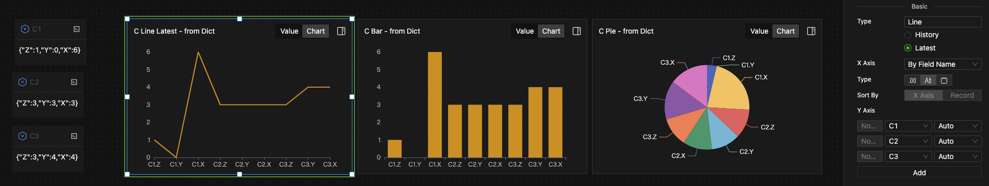 按数据格式表,Y轴需要Dict格式变量或容器时,选择对象后,可在二级选择中指定Number格式值对应的键(构造过的),从而以确定方式绘图