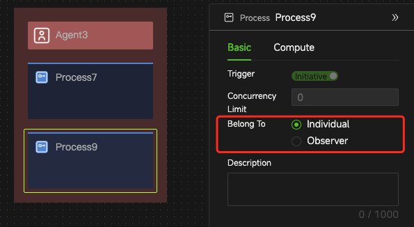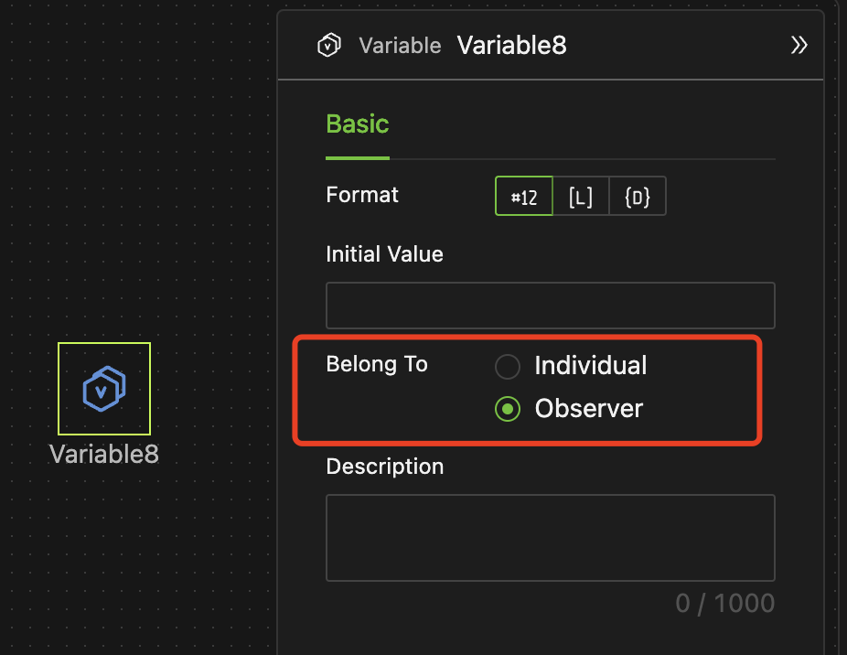 创建行为和属性时需要区分归属于观察者还是个体(默认),相应的画布对象图标也有区别,重影表示属于观察者